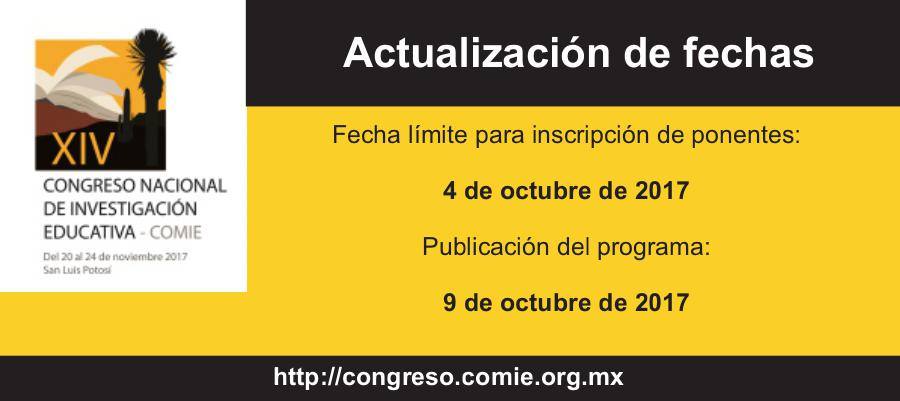 @EducacionFutura : El Consejo Mexicano de Investigación Educativa C... ha publicado las nuevas fechas del XIV Congreso Nacional de In… https://t.co/onrkGZ1cC3 (via Twitter http://twitter.com/EducacionFutura/status/913177734595190784)