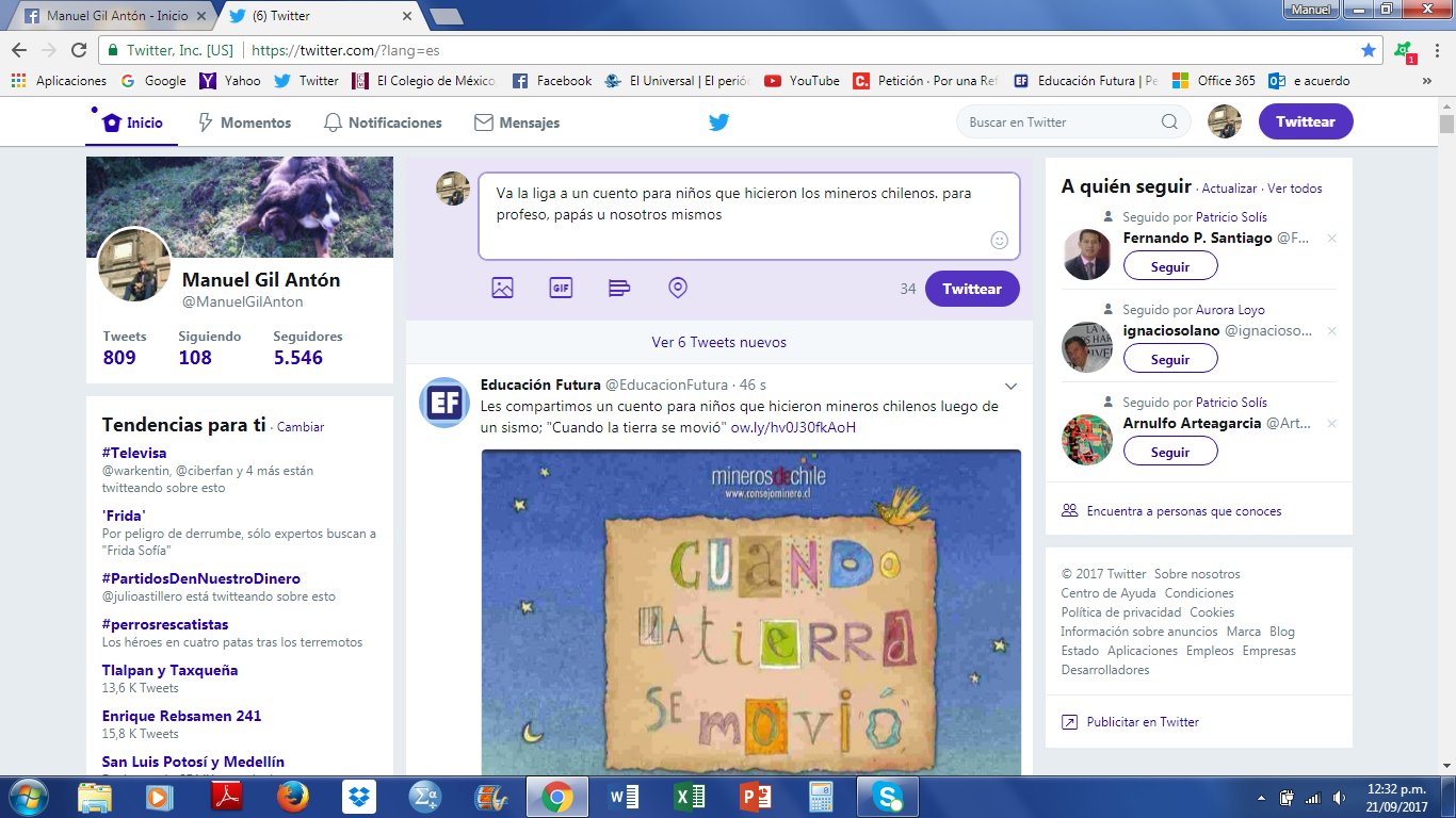 @ManuelGilAnton : Va la liga a un cuento para niños que hicieron los mineros chilenos. luego de un sismo: para profeso, papás y nosot… https://t.co/7Pgs0Utw9i (via Twitter http://twitter.com/ManuelGilAnton/status/910920200505106432)