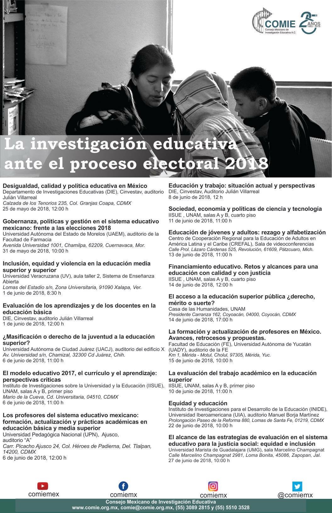@EducacionFutura : #Agenda - El @comiemx presenta los foros “La investigación educativa ante el proceso electoral 2018” Se realizarán del 25 de mayo al 27 de junio de 2018 en diferentes sedes, contarán con la participación de casi 100 investigadores y se transmitirán en vivo por redes sociales https://t.co/7ZzU9ngJRj (via Twitter http://twitter.com/EducacionFutura/status/996479106354241536)