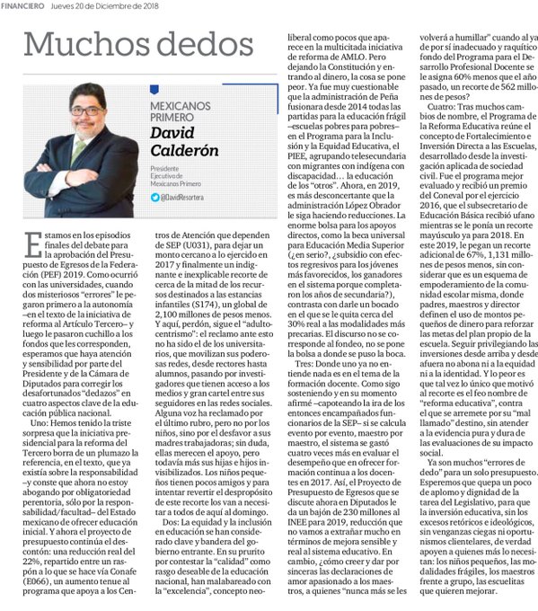 @ManuelGilAnton : Es importante revisar los rubros que señala David Calderón en este texto, y la reducción del 40% para Normales que advierte Alma Maldonado. https://t.co/hQQel7HfK9 (via Twitter http://twitter.com/ManuelGilAnton/status/1076236486171717633)