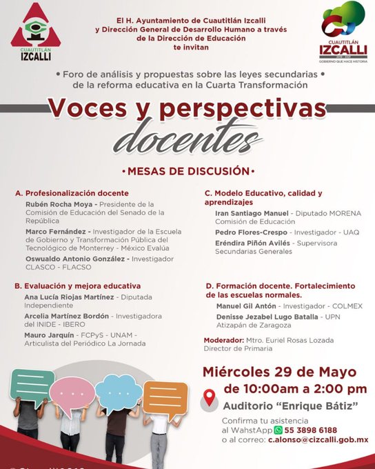 @EducacionFutura : #Agenda - El próximo 29 de mayo se realizará el Foro de Análisis sobre las Leyes Secundarias de la Nueva Reforma Educativa. Participan Manuel Gil Antón, Marco Fernández, Pedro Flores Crespo, Adela Piña, Arcelia Martínez, entre otros https://t.co/9p1MqCQHK6 (via Twitter http://twitter.com/EducacionFutura/status/1131938163130339328)