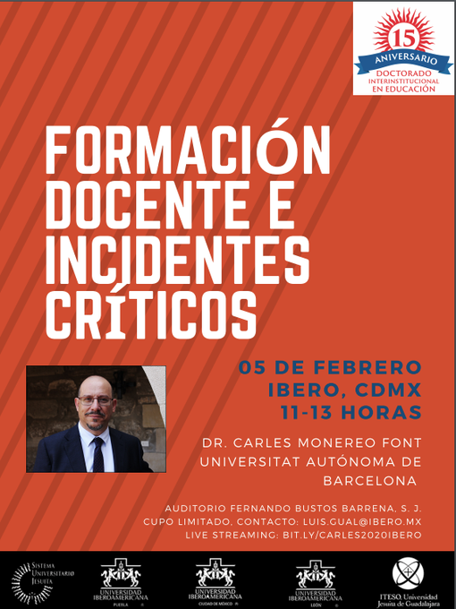 @EducacionFutura : #Agenda - El Dr. Carles Monereo estará en la Ciudad de México e impartirá la conferencia "Formación docente e incidentes críticos. 5 de febrero, Universidad Iberoamericana CDMX https://t.co/9j8CltJwUQ (via Twitter http://twitter.com/EducacionFutura/status/1222346187245789250)