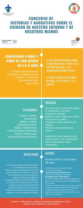 @EducacionFutura : #Agenda - Ya está disponible la convocatoria para el Concurso de Historias y narrativas sobre el cuidado de nuestro entorno y de nosotros mismos https://t.co/nj7vnjyop6 (via Twitter http://twitter.com/EducacionFutura/status/1258122466653855744)
