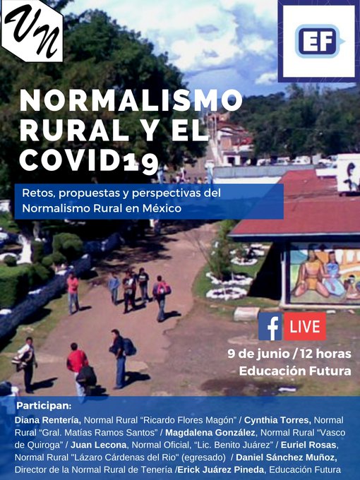 @EducacionFutura : #Agenda - Próximo 9 de junio tendremos la mesa de análisis "Normalismo Rural: retos y perspectivas". Participan Diana Rentería Cynthia Torres, Magdalena González, Euriel Rosas, Daniel Sánchez Muñoz, y @elErickJuarez de Educación Futura https://t.co/5QZfyZMp0b (via Twitter http://twitter.com/EducacionFutura/status/1268988959973150725)