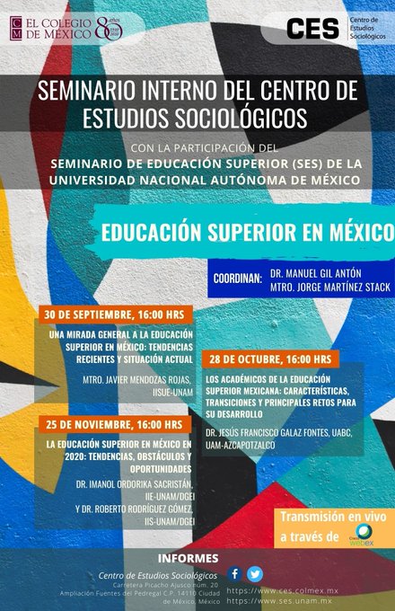 @ManuelGilAnton : Programa de las tres sesiones del Seminario CES/COLMEX-SES/UNAM. Inicia el miércoles 30 de septiembre, de las 16 a las 18 horas. https://t.co/nZz17W37ce (via Twitter http://twitter.com/ManuelGilAnton/status/1309496299943682049)