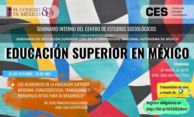 @ManuelGilAnton : Mañana, de 4 a 6, segunda sesión del Seminario interno del Centro de Estudios Sociológicos, en coordinación con el Seminario de la Educación Superior de la UNAM. Va a estar muy interesante. va el cartel: https://t.co/FN2pKFVmfL (via Twitter http://twitter.com/ManuelGilAnton/status/1321112016954609664)